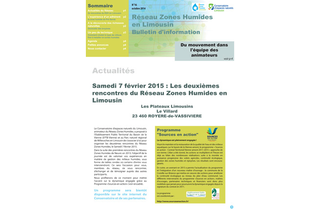Le dernier bulletin d'info du Réseau Zones Humides en Limousin est disponible. Téléchargez-le.