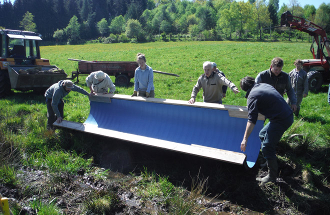 Pose d’un système de franchissement de cours d’eau : l’arche en PEHD surmontée d’un remblai