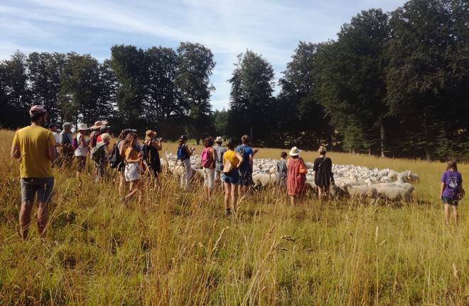 Sur la tourbière du Longeyroux, le 3 aout dernier, s’est tenue la 2e édition de la manifestation « de Villages en Sonnailles » organisée en partenariat avec le Groupement Pastoral des 1000 sonnailles, le PNR de Millevaches en Limousin et le Conservatoire.