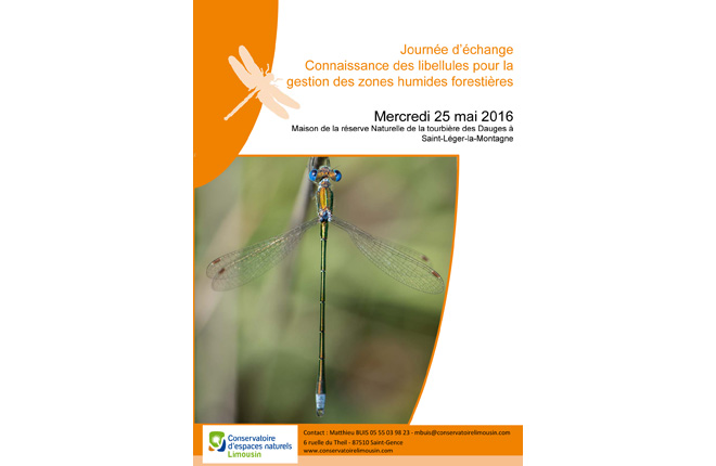 Dans le cadre du Plan Régional d'Action en Faveur des Odonates, la Société Limousine d'Odonatologie et le Conservatoire d'Espaces Naturels du Limousin vous invitent à une journée de formation sur le thème des libellules forestières.