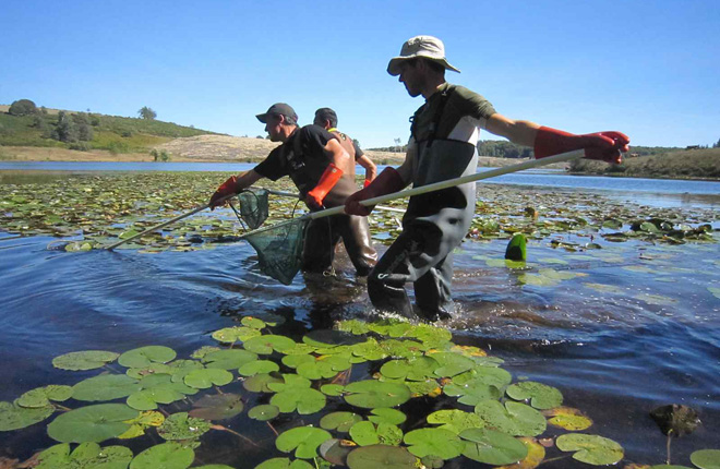 Des méthodes complémentaires sont mises en œuvre : prospections par pose nocturne de filets benthiques ciblant les poissons adultes et subadultes, pose de nasses ciblant les écrevisses éventuelles du plan d’eau, réalisation de pêches électriques de bordure visant plutôt les poissons juvéniles et la reproduction.
