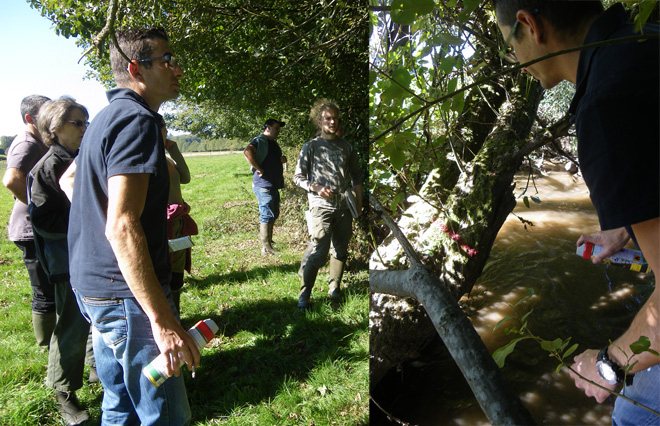 13 personnes, agriculteurs, techniciens de rivières, entreprise de génie-écologie, particuliers et techniciens agricoles, ont participé à cette journée. La matinée, en salle, avait pour but de rappeler les aspects réglementaires et les enjeux d’un bon entretien des ripisylves. L’après-midi, le groupe s’est réuni sur les parcelles de M. Guillonet, agriculteur sur la commune de Sardent (23). Les principes de gestion évoqués au cours de la matinée ont été mis en pratique. Les participants se sont alors mis à l’épreuve du marquage des arbres et des branches à couper et des embâcles (accumulation de branchages dans le cours d’eau) à conserver ou non.