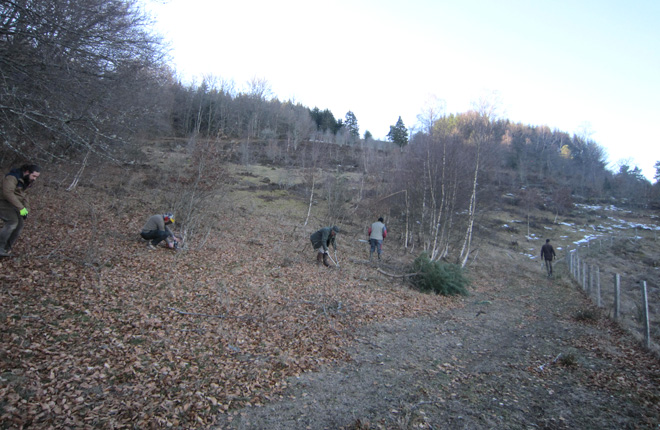 Le samedi 16 février dernier, le chantier participatif organisé sur la lande de Razel (Pérols-sur-Vézère, 19), au cœur du plateau de Millevaches, a réuni une petite dizaine de volontaires. Au programme, entretien de la lande par la coupe de petits ligneux (chênes, bouleaux...). Cette opération fait suite aux travaux de restauration, notamment par bucheronnage, initiés sur le site dès 2006-2007, et vient en appui au pâturage ovin, de retour depuis 2013.