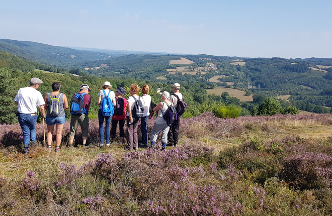 Ces échanges ont permis d'avoir des témoignages d'habitants autour des anciennes pratiques pastorales sur la lande, de constater les premiers effets positifs du retour du pâturage, mais également de profiter de la beauté des sentiers de la commune et de la lande fleurie.