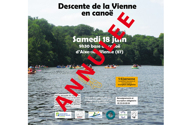 Nous sommes obligés d'annuler la sortie canoë prévue pour ce week end. Les niveaux d'eaux sont trop importants. N'hésitez pas à consulter notre calendrier des sorties. Dans le même secteur nous vous proposons un Rallye découverte sur l'île de Chaillac le 28 juillet.