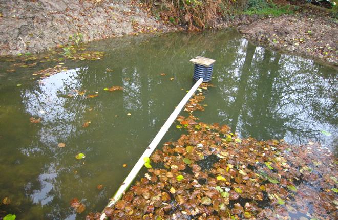 Travaux de restauration de mare avec prise alimentant un abreuvoir gravitaire