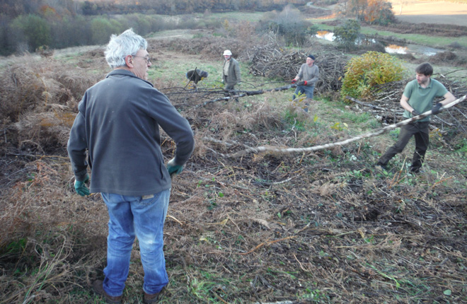 Une dizaine de personnes a travaillé durant pour dégager une prairie où des branches ont été laissées sur place par un exploitant forestier. Un débroussaillage a été menée pour permettre à l'Orchis brûlé de se développer. Le Conservatoire recherche un éleveur de brebis pour entretenir les parcelles qui seront prochainement acquises grâce au partenariat avec la SAFER.